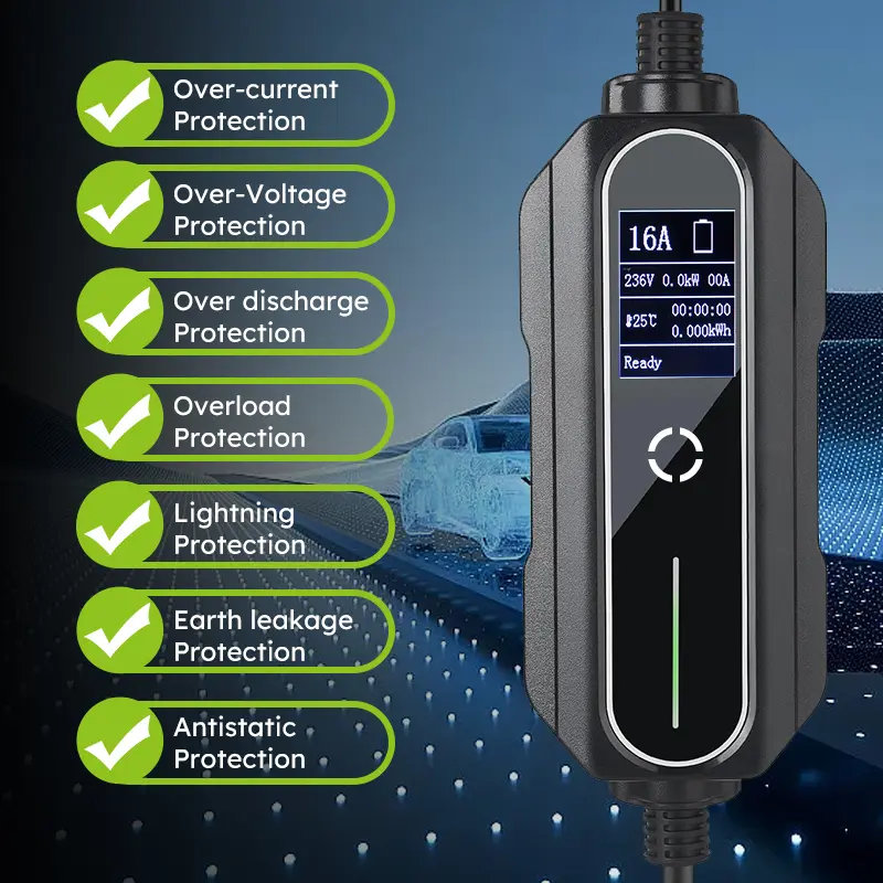 LCD screen: display charging current, voltage, output energy, charging time, state information, fault information and etc.